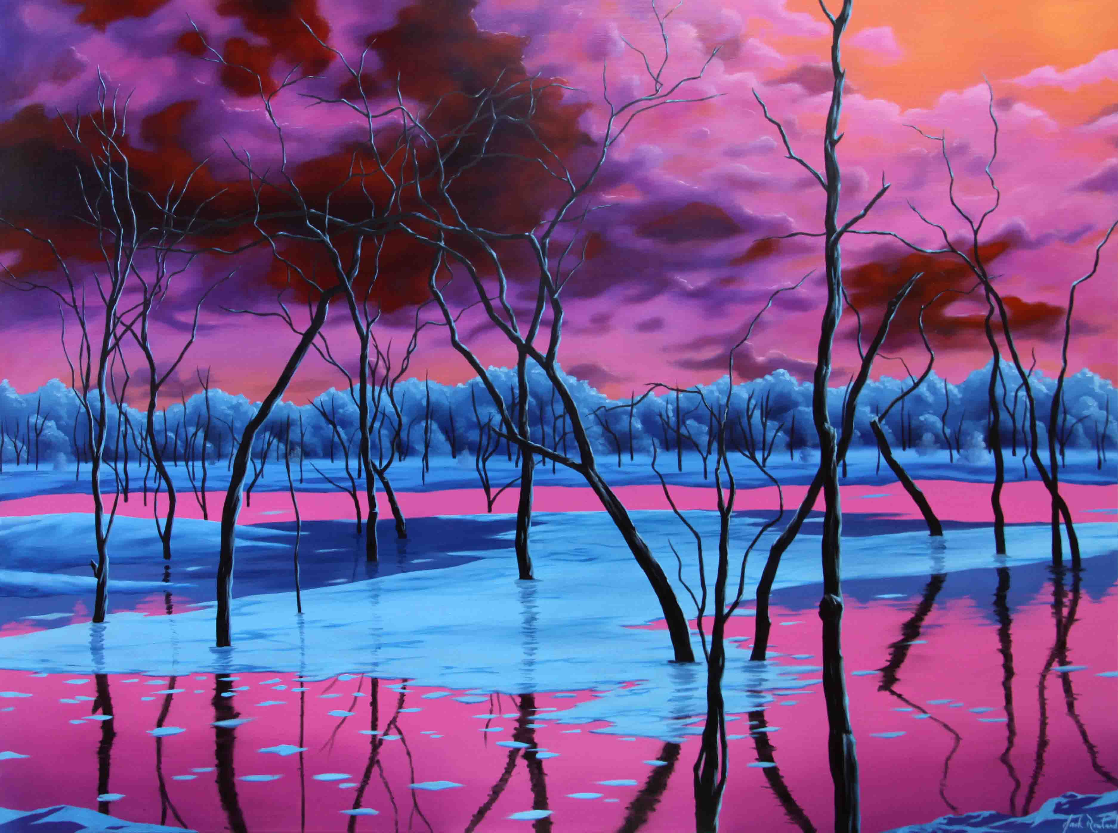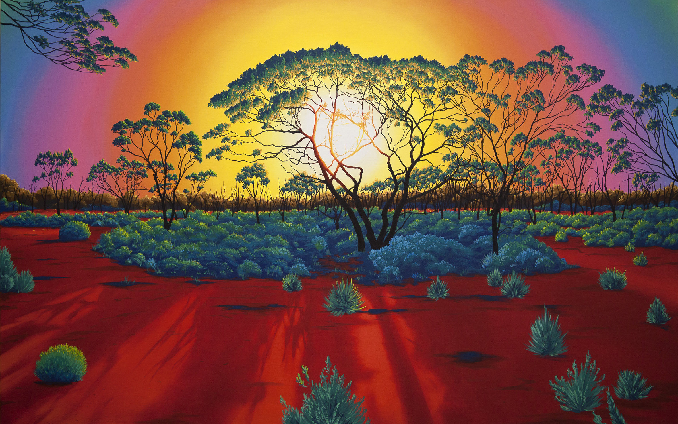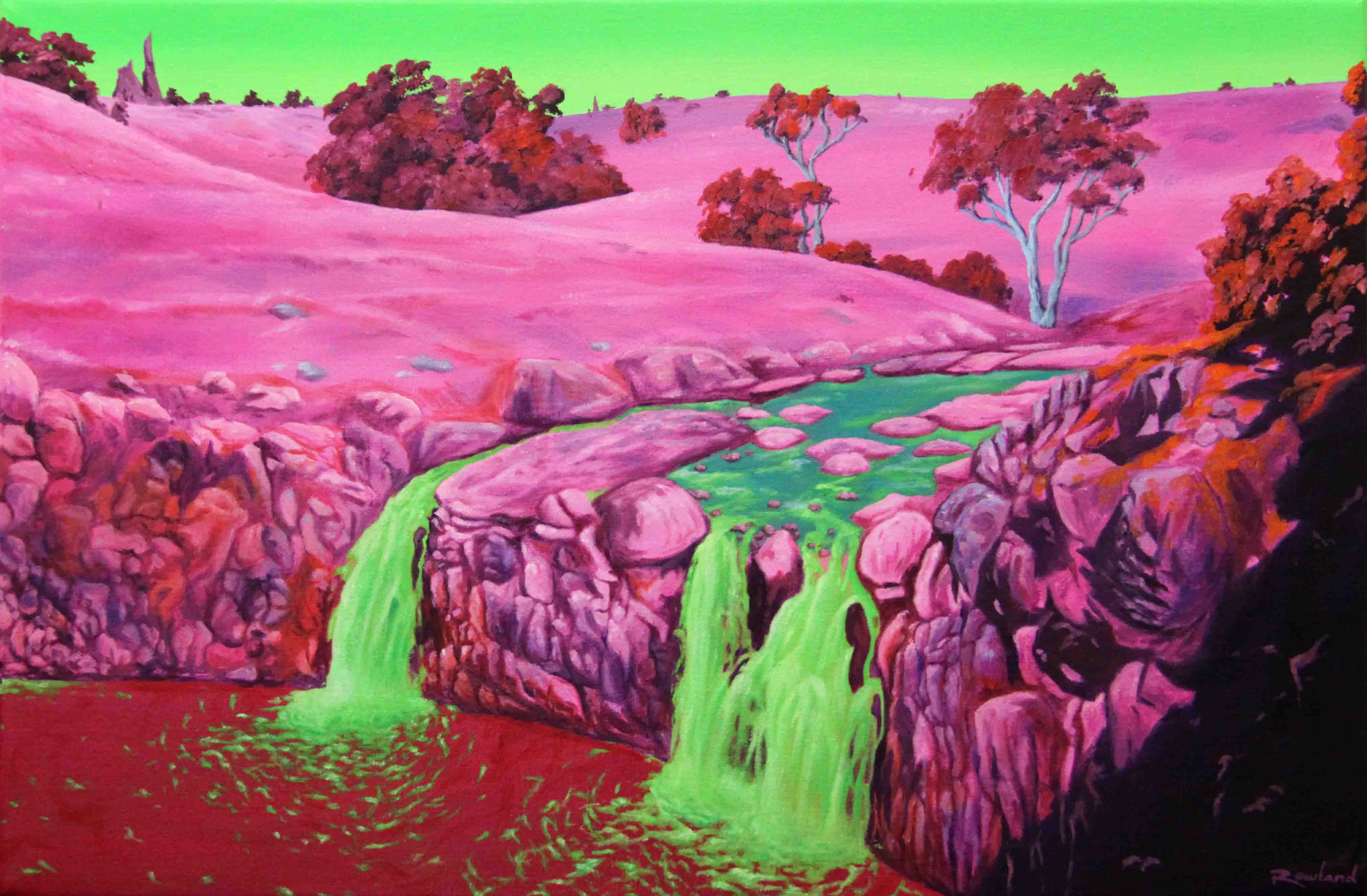 Jack Rowland transforms the familiar Australian landscape into hyper-real paintings of an unfamiliar, dreamlike, almost alien environment. By combining a realist style of technical oil painting, with otherworldly, saturated colours, Rowland revitalizes the genre of landscape painting and offers an alternative way of viewing the natural world.