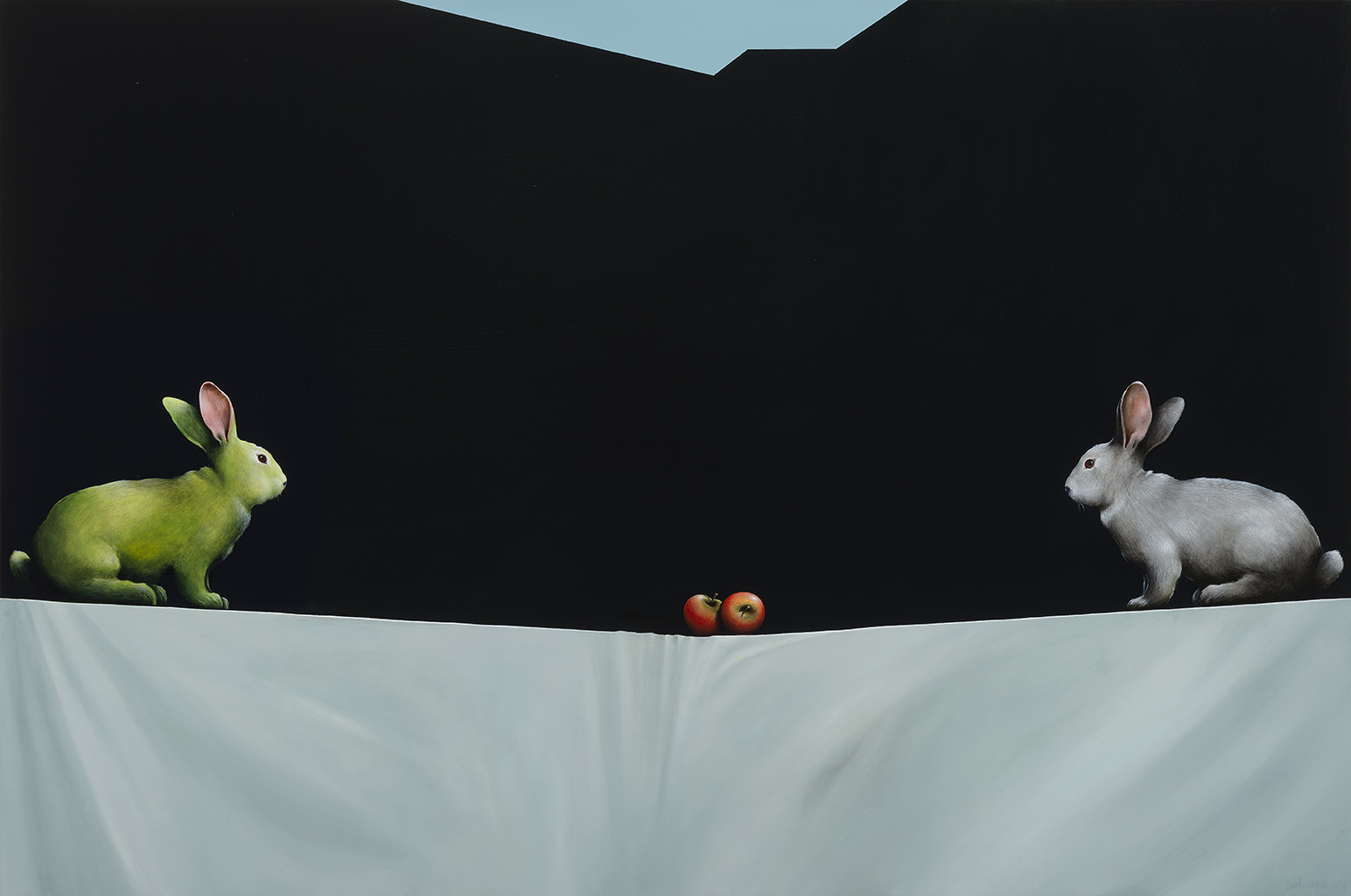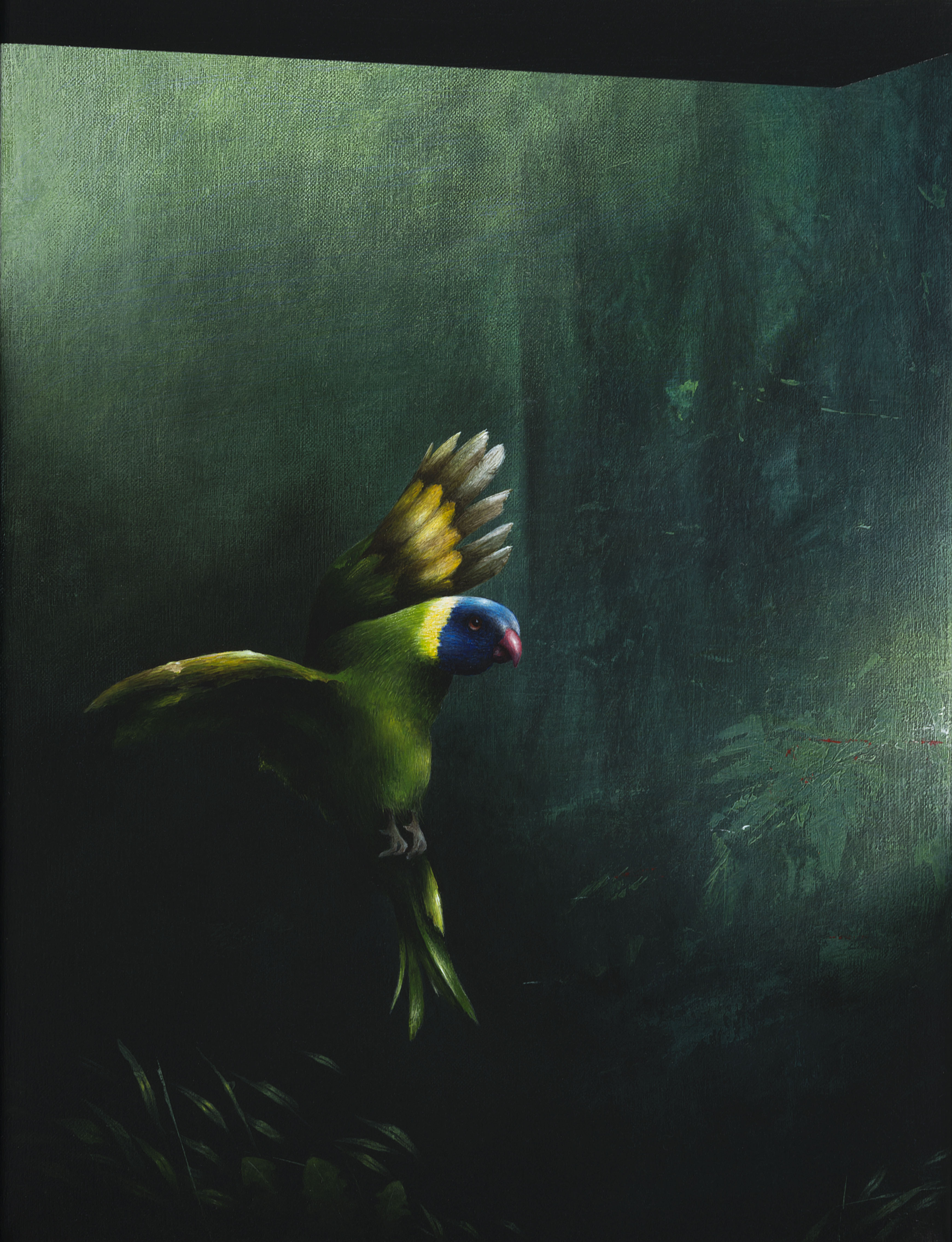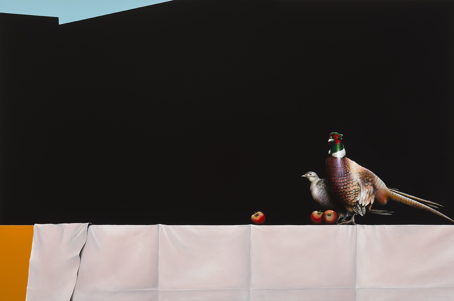 From salacious apples tumbling through space to curious crocodiles housed within chequered foyers, Jarek Wojcik invites you to enter a world of exquisite beauty. From within these hyper-real worlds Wojcik combines the still life tradition with modern artefacts to offer a self-reflexive critique of the history, perception and status of traditional painting methods in contemporary art.