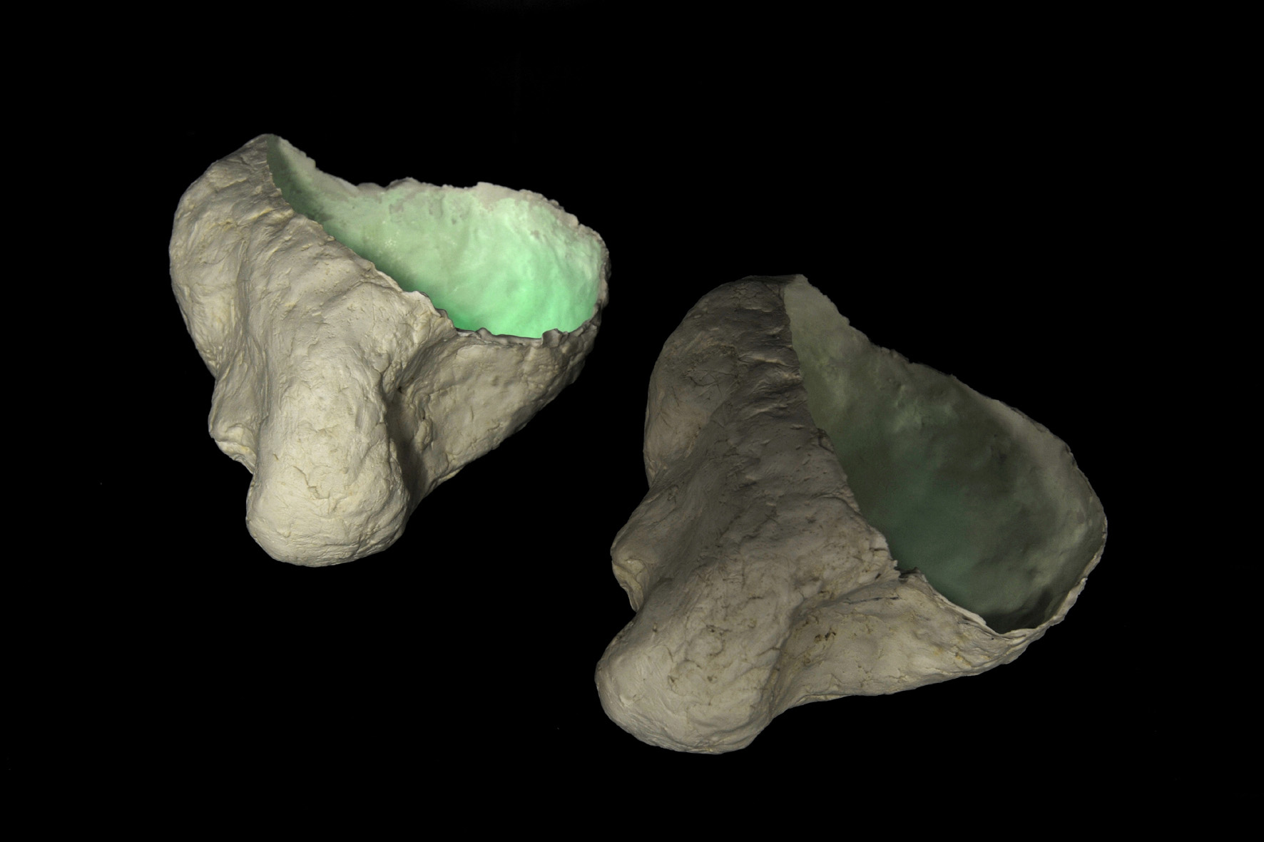 Elisabeth Weissensteiner, Fading Memories, 2008, Polymer enforced gypsum, light reactive pigments, 15 x 20 x 8cm each