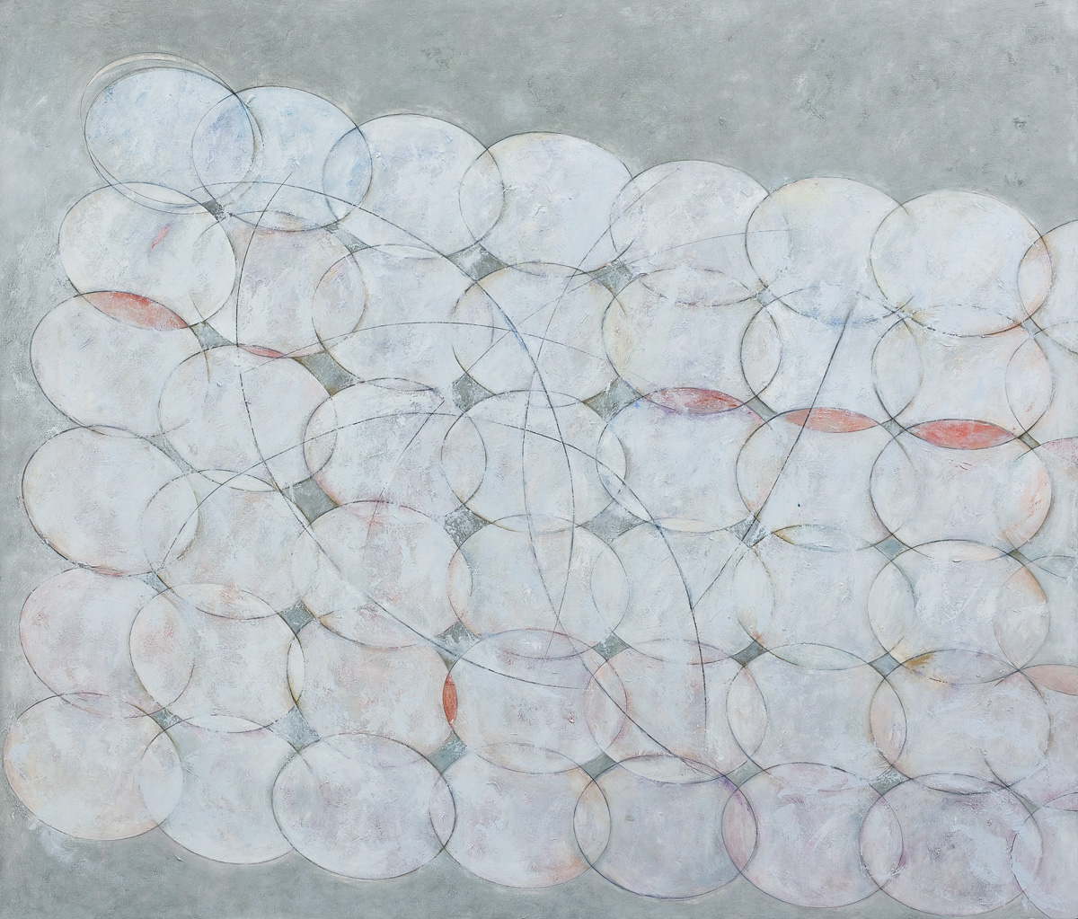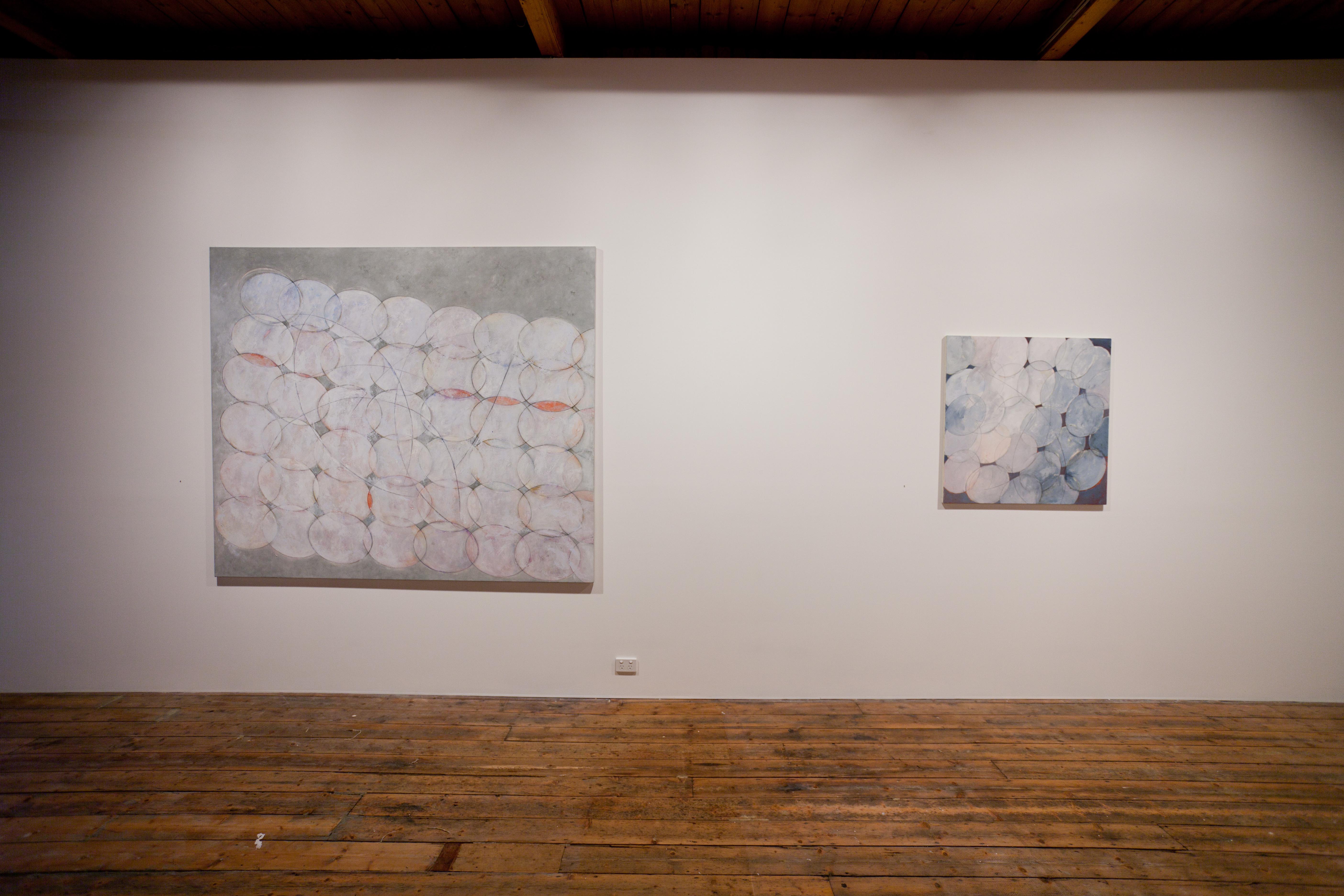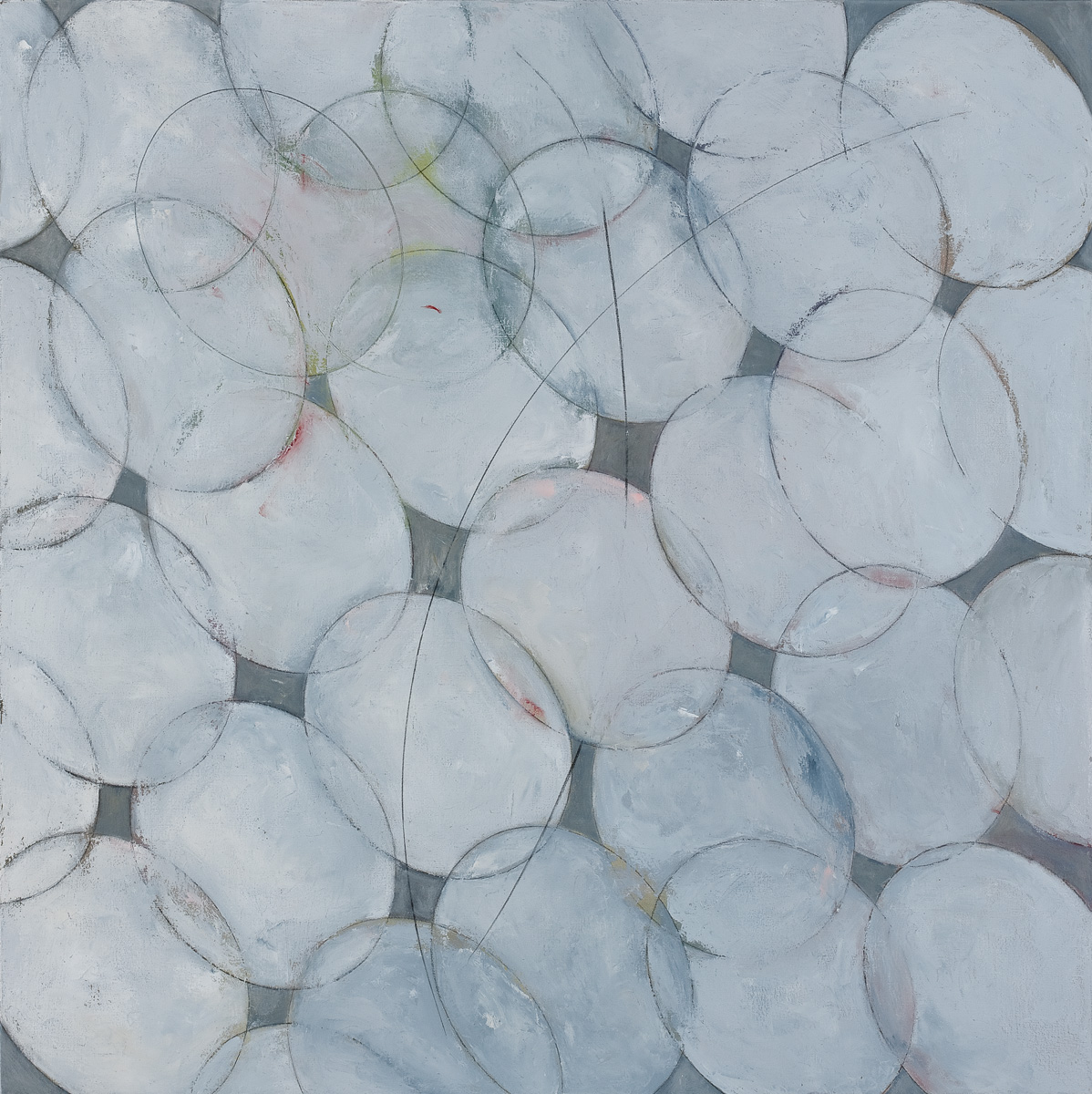 Carolyn Fels’ new series of paintings Continuum combines elliptical forms and linear markings immersed in a muted palette. Fels engages with the formal aesthetics of Modern Abstraction, but there is no rigidity to the geometry of her paintings. Drawing inspiration from the natural world Fels creates fields of effortless movement and variation. Her fluid shapes float, shudder and sweep across the canvas inspiring a wistful meditation in their eternal repetition.