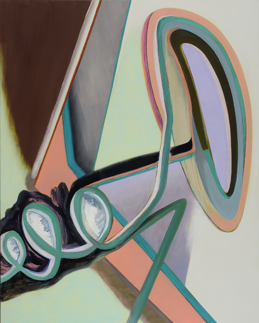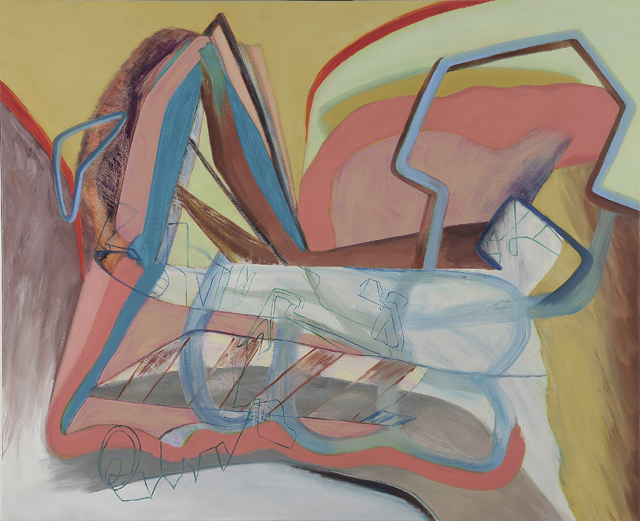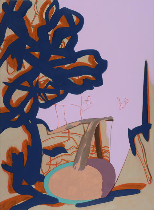 David Palliser’s most recent paintings are vivid, dynamic monuments made from spare and simple gestures. Nerve Bangle began as series of loose gouache sketches made during a residency in Paris, from which each painting became a celebration in a manner that the artist compares to ‘a grand ceremony for a flea in a cage’.