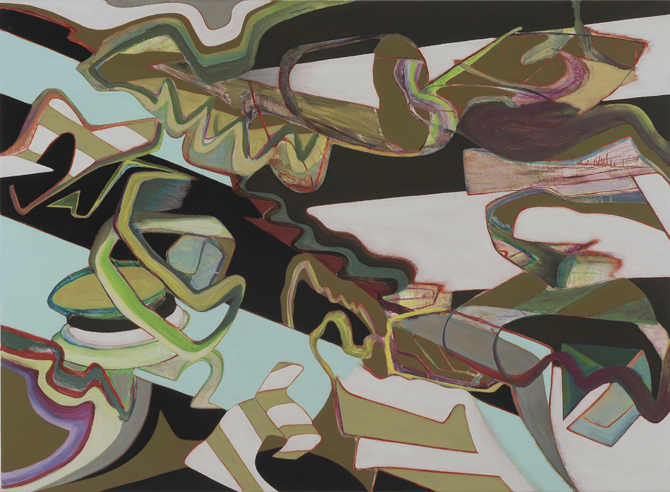 At the heart of Palliser’s practice is the continuing exploration of abstract painting. Through the lively combination of different brushwork – from flat, bold fields and simple patterns of pure colour, to washes, splatters and fine lines – Palliser creates spaces that twist and turn, bend in upon themselves and finally bring disparate elements into harmony.