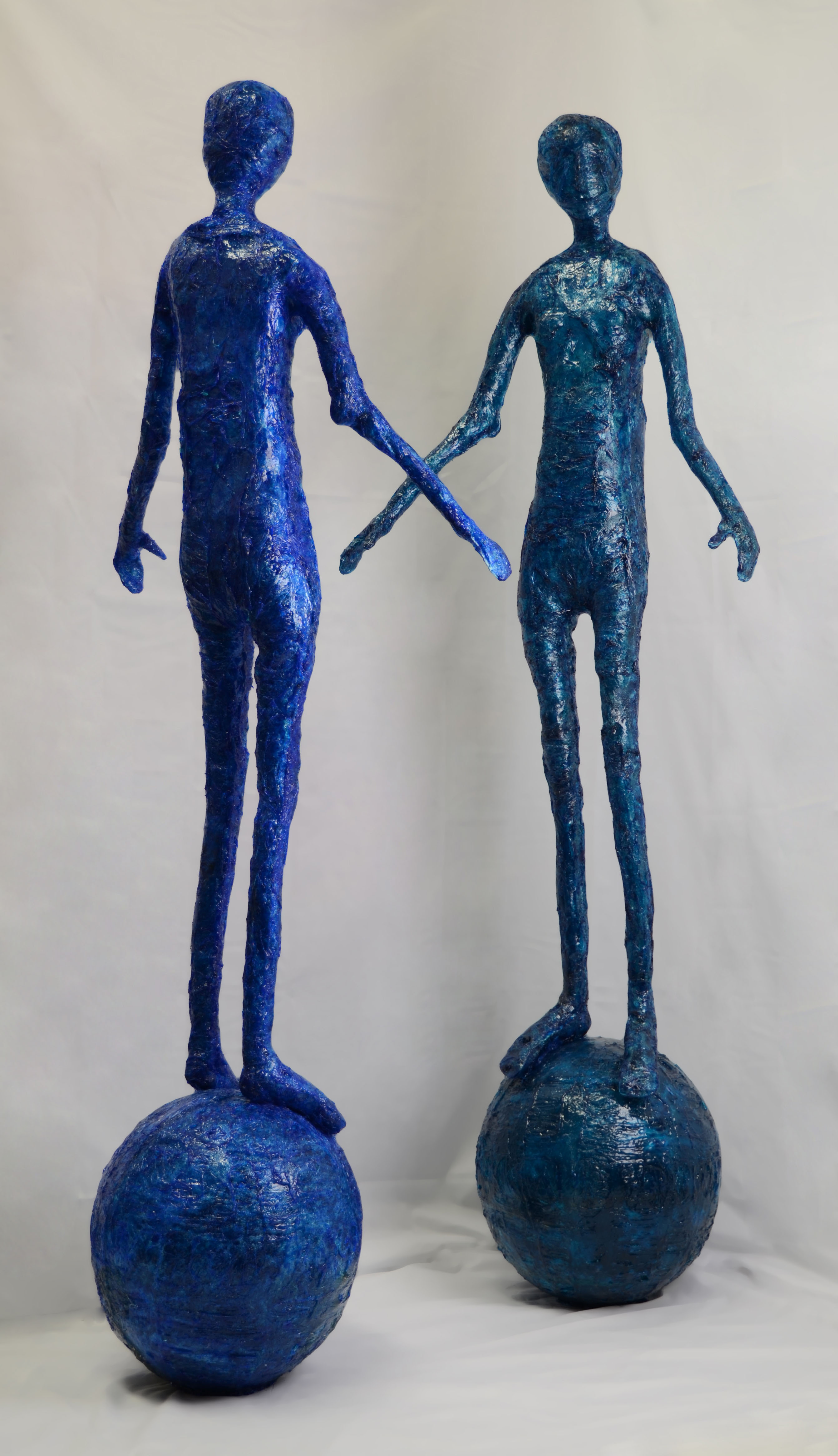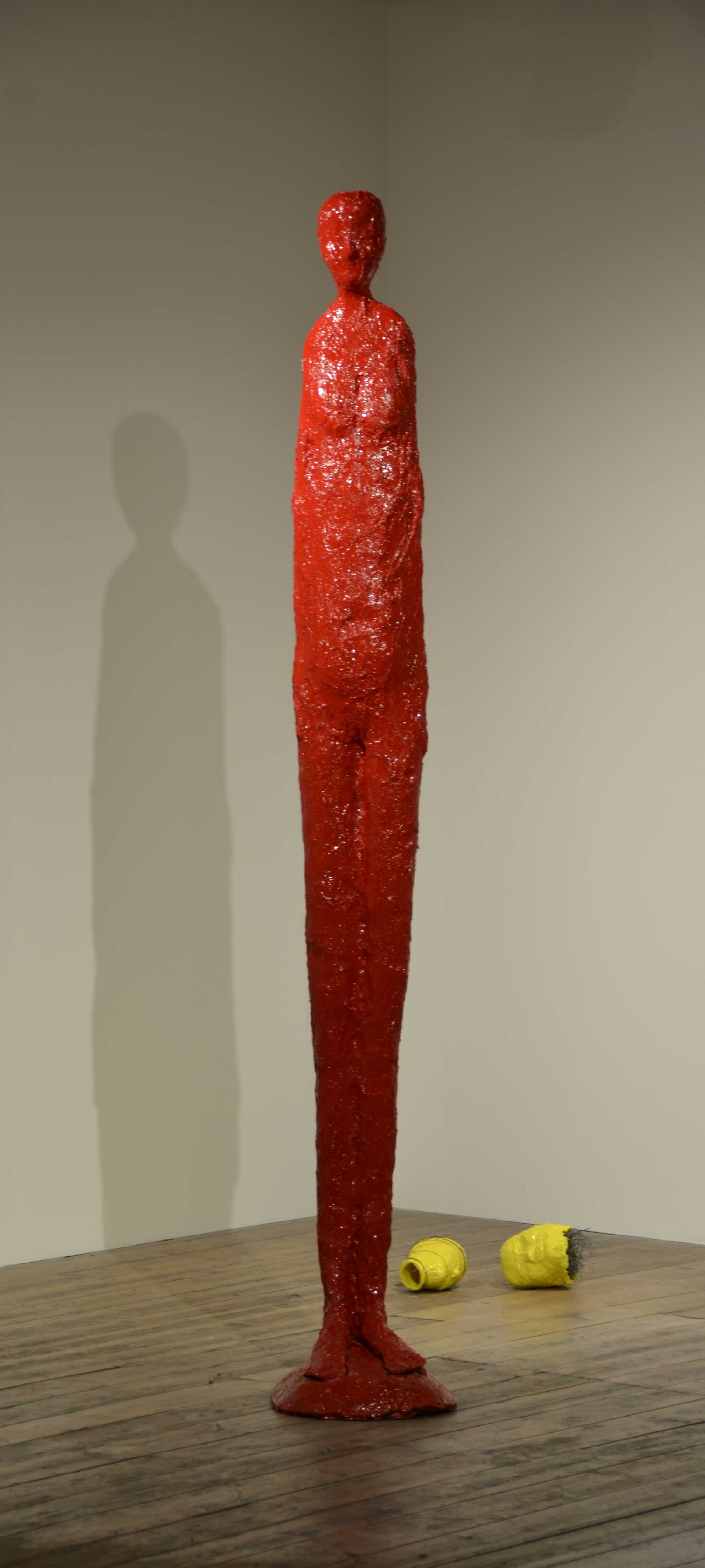 Elisabeth Weissensteiner’s new installation explores our continuous dance through time and space. Some taller than life-sized forms leap and skip through the gallery space, sculpted from fiberglass and brightly coloured polyester resin using a technique the artist has spent over eight years developing. Additionally, Weissensteiner presents a new video projection of black and white slowly moving images, which continue to explore the theme of fragments. Together the exhibition’s elements remind us that everything we perceive in our life is just a fragment of a larger whole. The places we inhabit, the people we meet, the things we are surrounded by, become part of a dance as we attempt to remain upright on this spinning ball of earth.