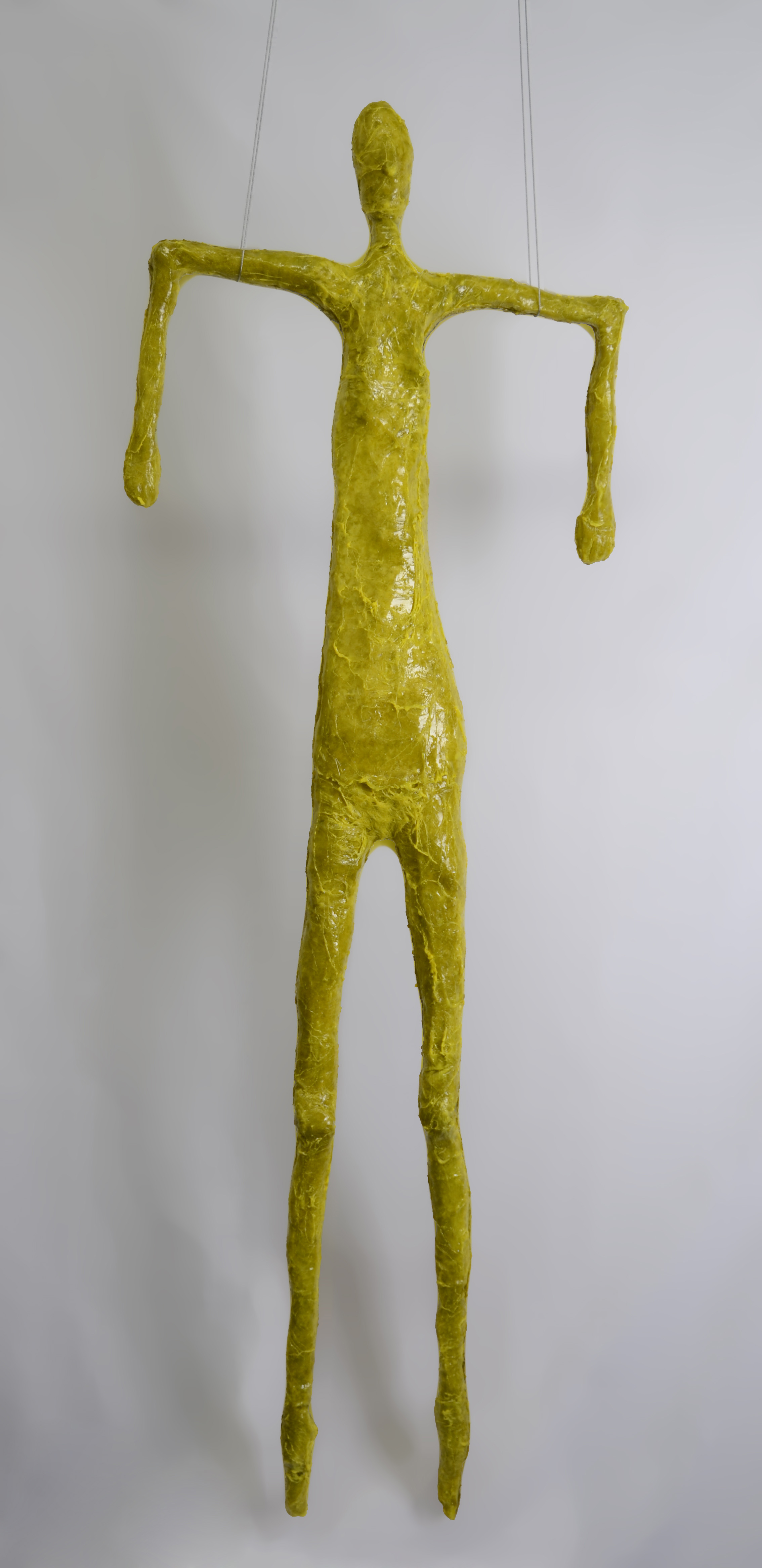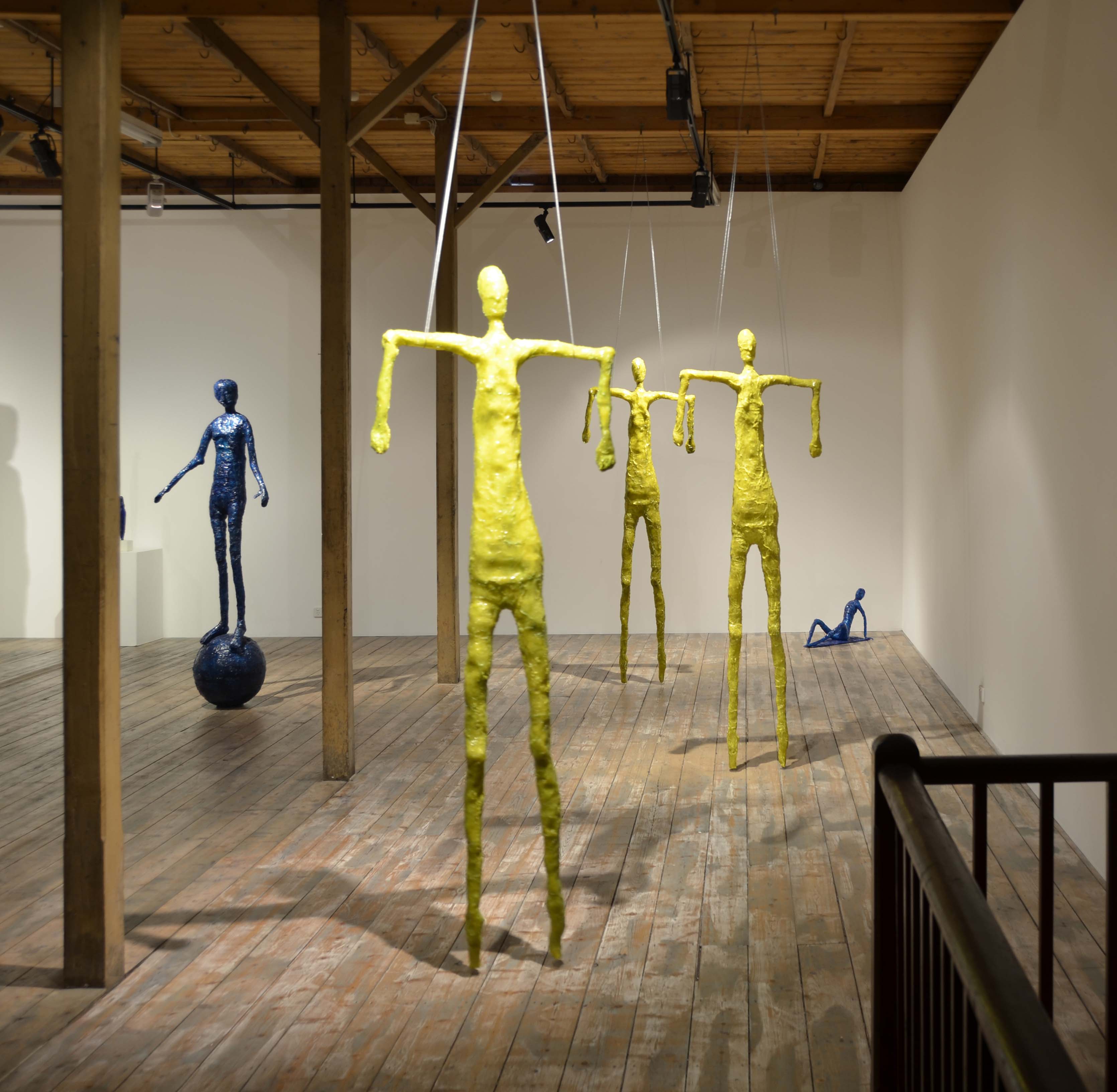 Elisabeth Weissensteiner, Three Yellow Dancers Floating, installation view, 2011, polyester resin, fibreglass and pigments, height 220cm each
