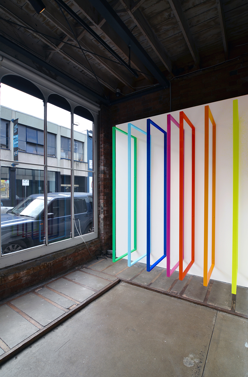 Through her approach to colour and painting, Coulter deliberately controls our experience – spatial elements will be revealed, destroyed and reinvented, defined by the site and situation, creating an interstitial space that exists between place and painting.