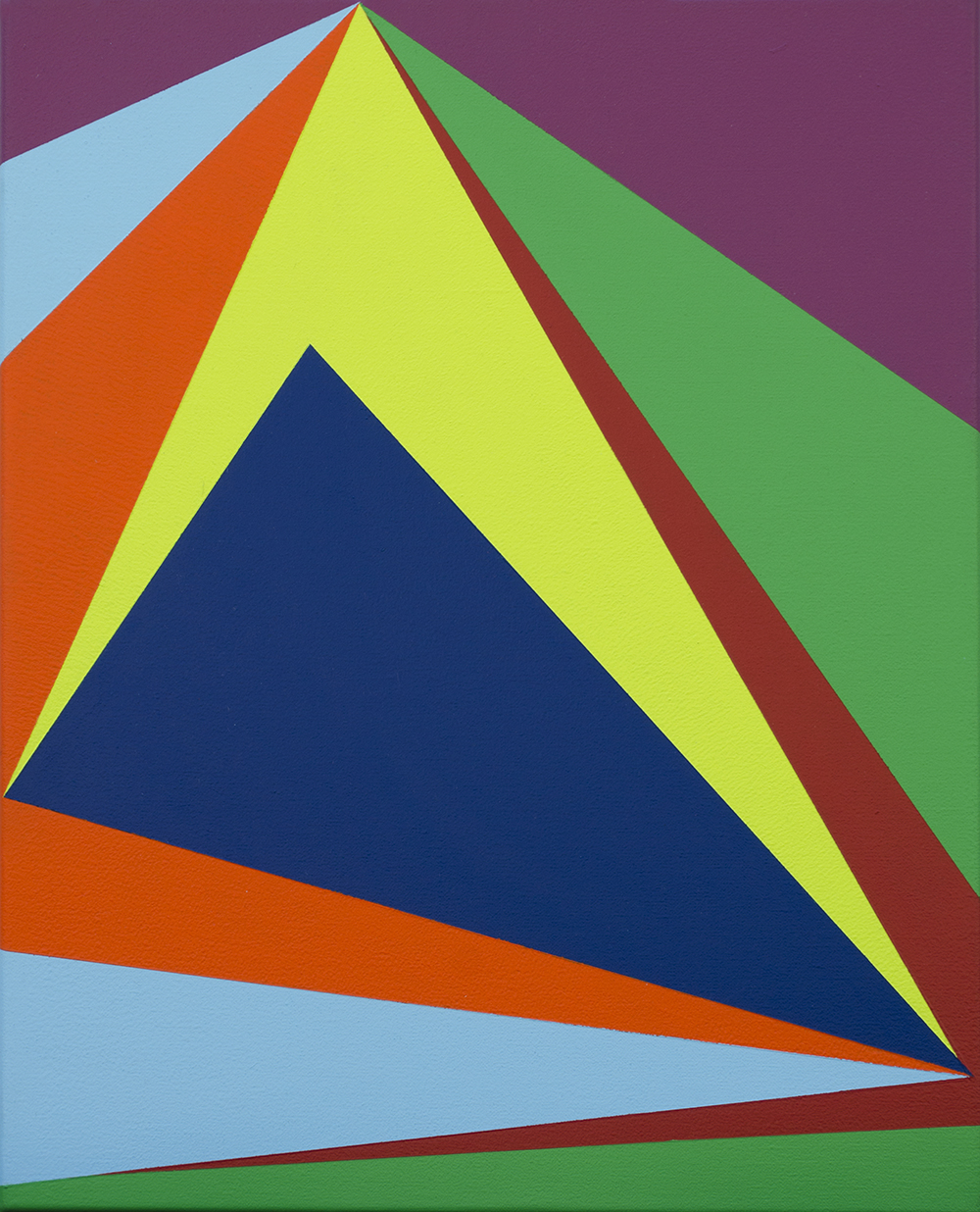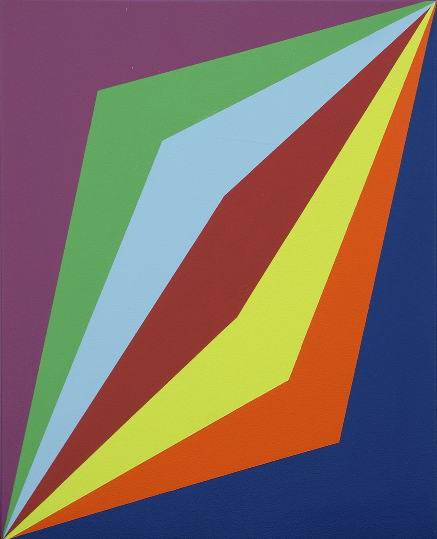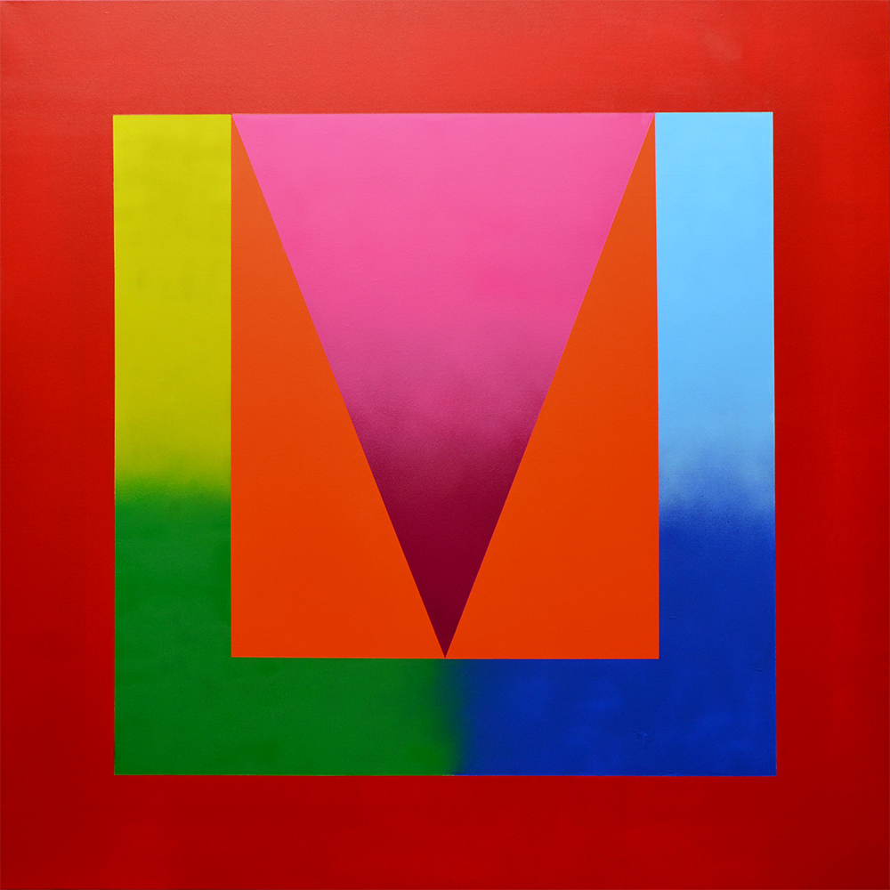 Interested in the concept of liminal space, Emma Coulter creates expansive paintings that leap from the wall into the physical plane, utilising saturated hues to enhance this metaphysical element. The colours that Coulter uses play off relationships based on placement, proportion and adjacency in response to space to create prismatic realms where imagination can take hold.
