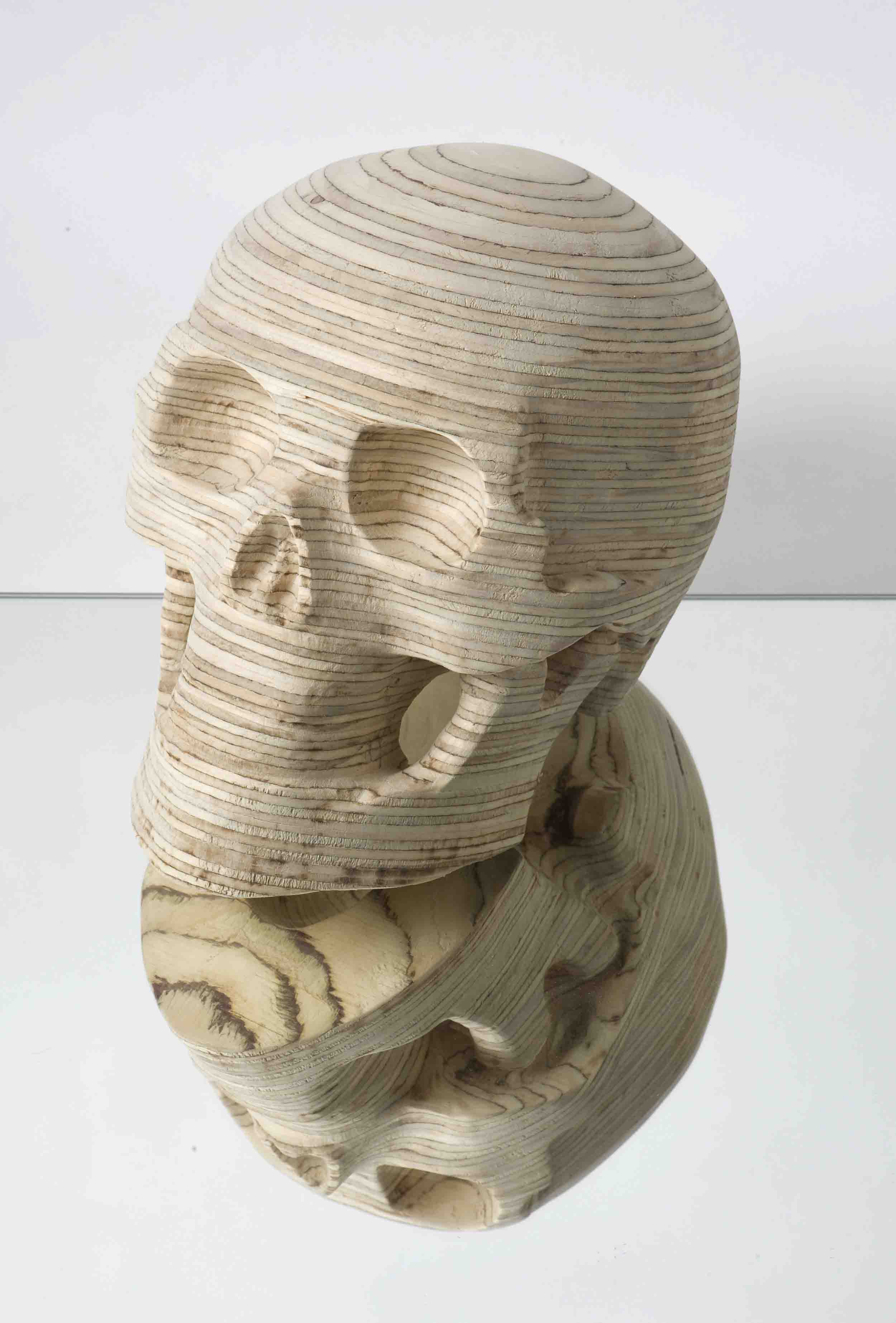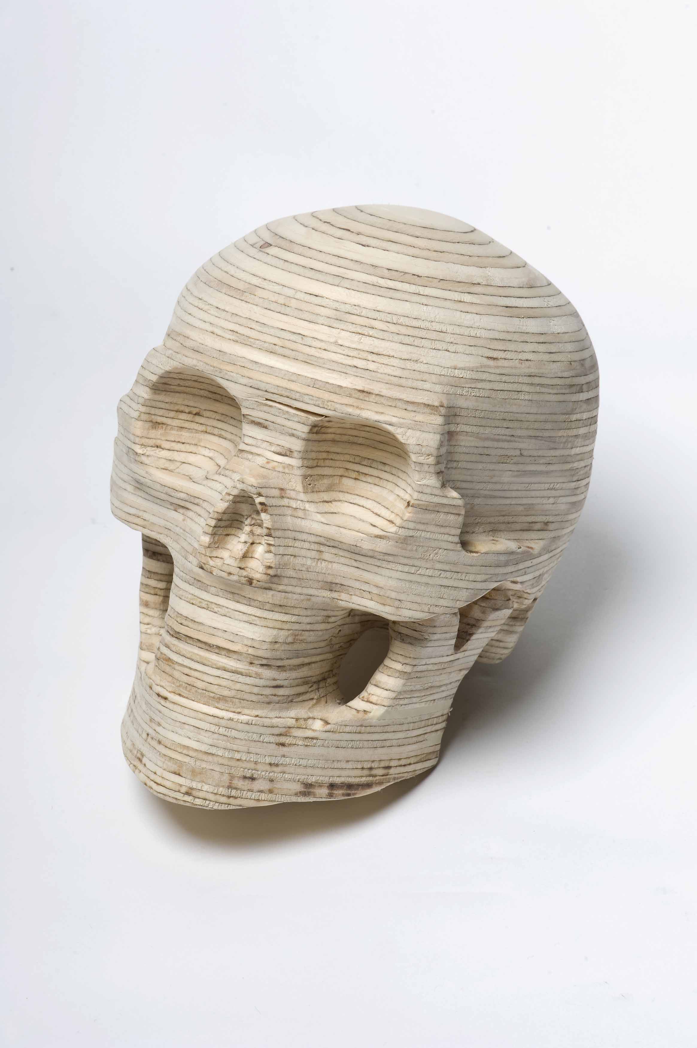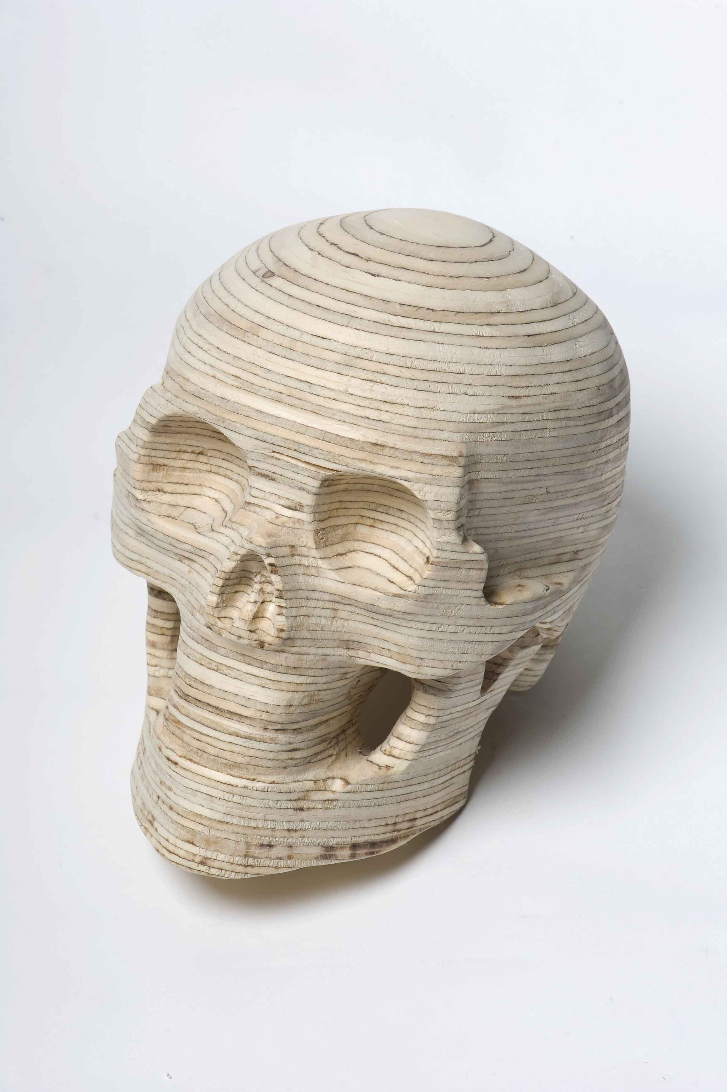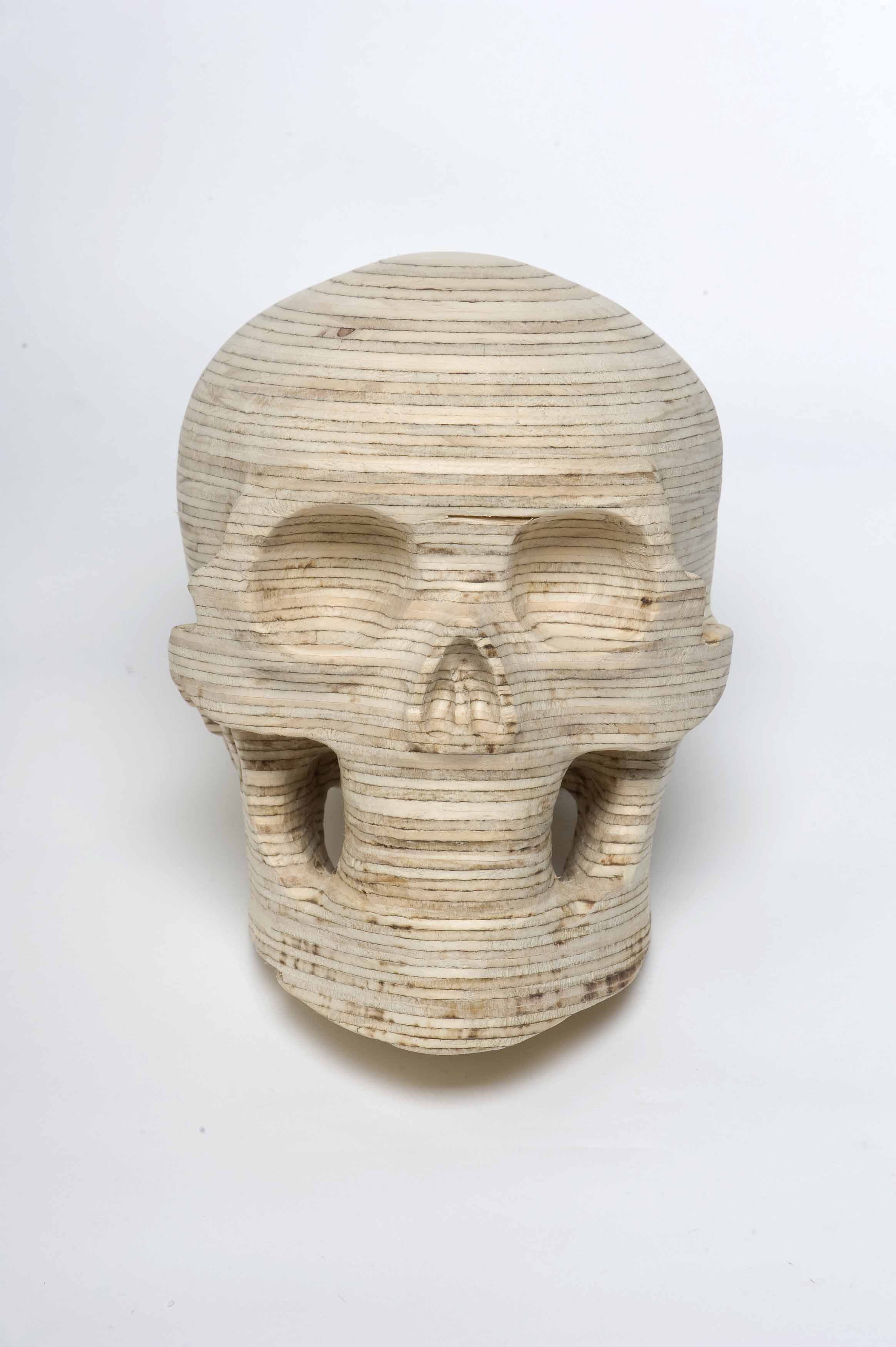 Kent Wilson’s new solo exhibition explores our connection to nature through the materiality of wood and its origin in plant growth. Wilson’s series of wooden skulls and intricate abstract drawings are extrapolations and interpretations of natural patterns, processes and behaviours. The skulls implicate human life in the materiality of the plywood, the contour lines reflecting the growth rings of seasonal time. His considered use of this manufactured natural product blurs the fragile distinction between the natural and the cultural.