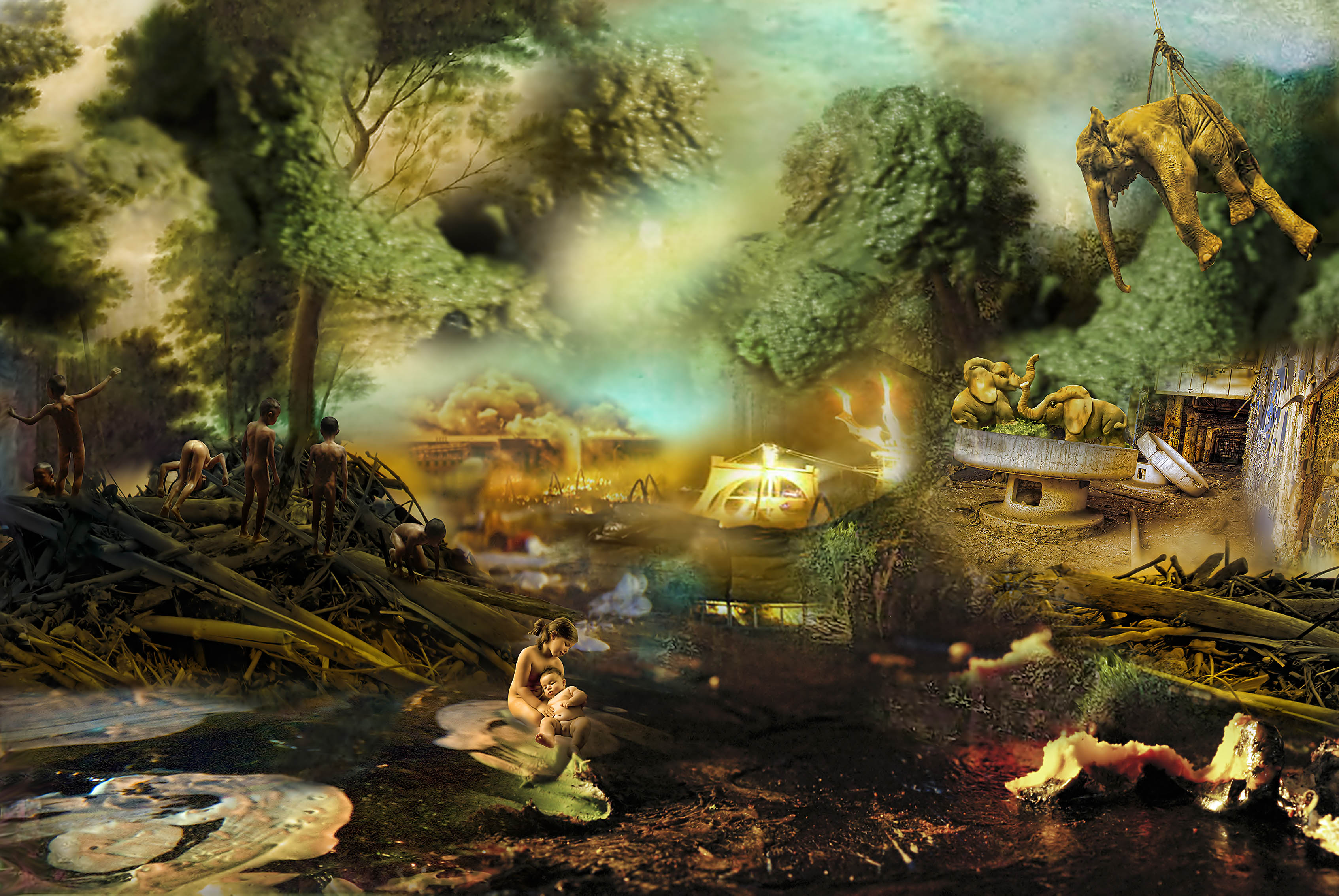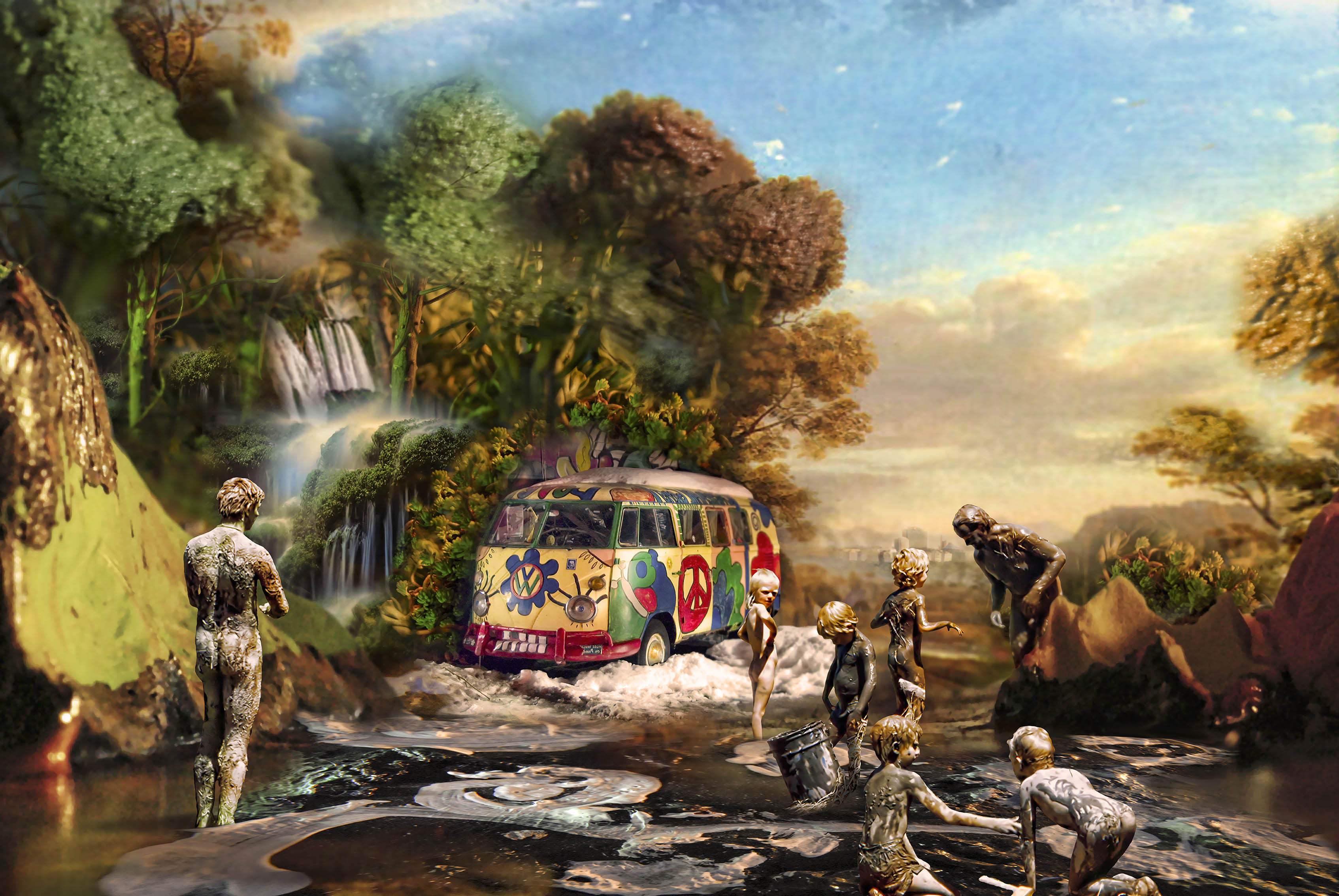 Exaltations is a new series of images by Italian-based artist Paolo Consorti. His theatrical style blends found and original photography to create hallucinogenic, technicolour vistas. Using real actors and stages as a basis of these scenes, Consorti digitally transforms them to create new images, and in the process turns the ordinary manipulation of information into ecstatic play.