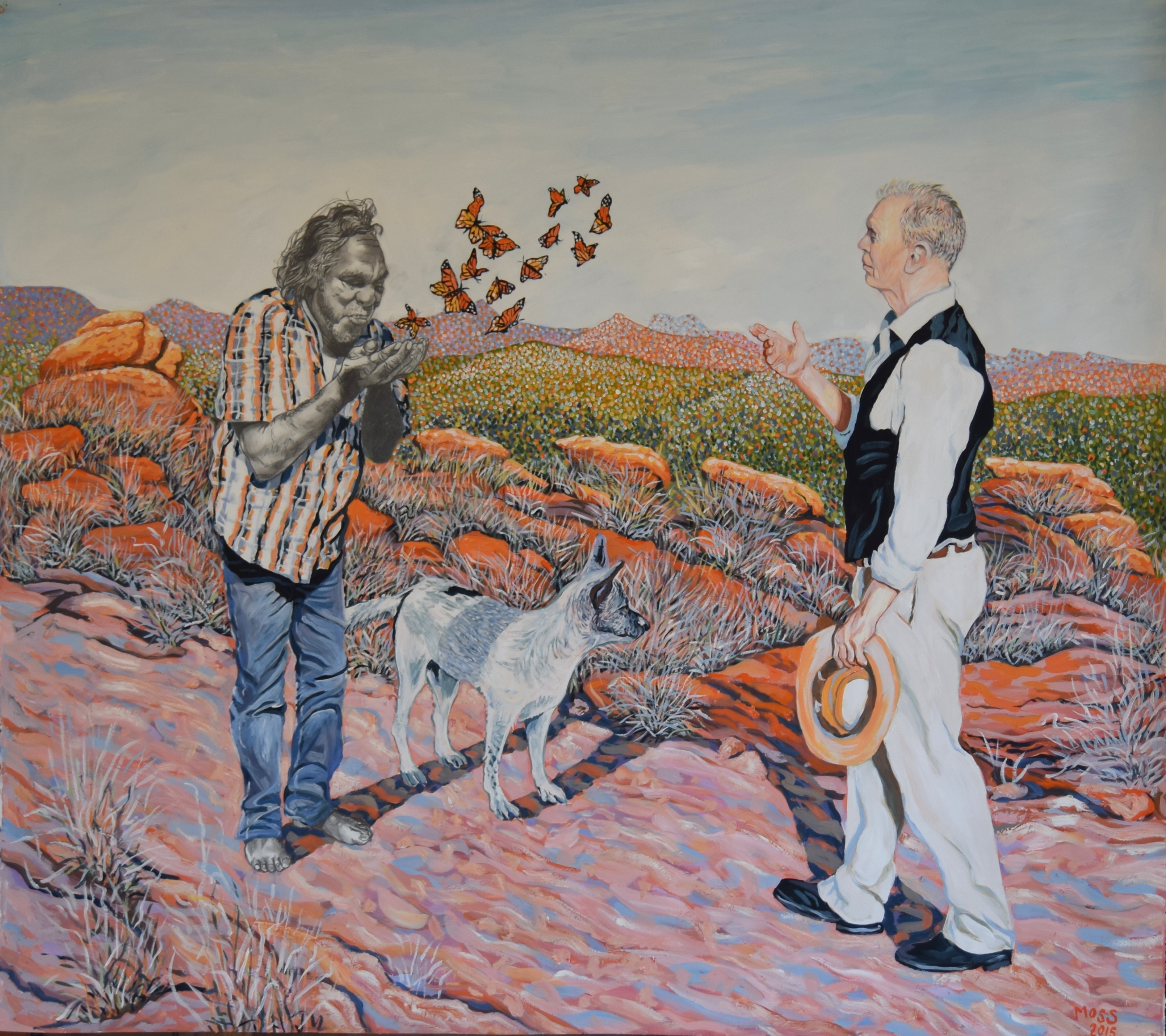 This is Moss’ fourth solo exhibition with Anna Pappas Gallery. Moss was awarded the Prime Minister’s Literary Award for Non-fiction in 2011 for his first memoir The Hard Light of Day. Moss’s second memoir, One Thousand Cuts: Life and Art in Central Australia was launched in conjunction with a retrospective exhibition at Anna Pappas Gallery in 2013
